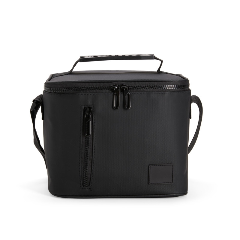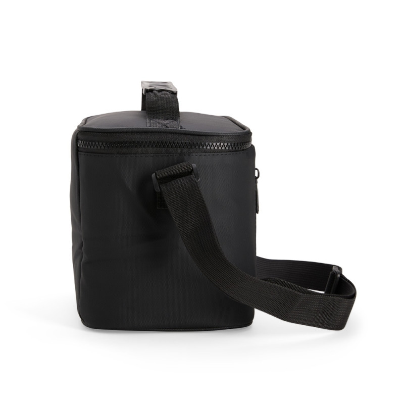 Descrição: Bolsa térmica confeccionada em poliéster mesclado com PVC impermeável, fechamento por zíper e capacidade máxima de 6 litros. Possui revestimento térmico em PEVA atóxico, o que ajuda a conservar a temperatura de alimentos e bebidas por mais tempo. Conta também com bolso frontal, placa emborrachada para personalização, uma alça de mão e alça transversal.