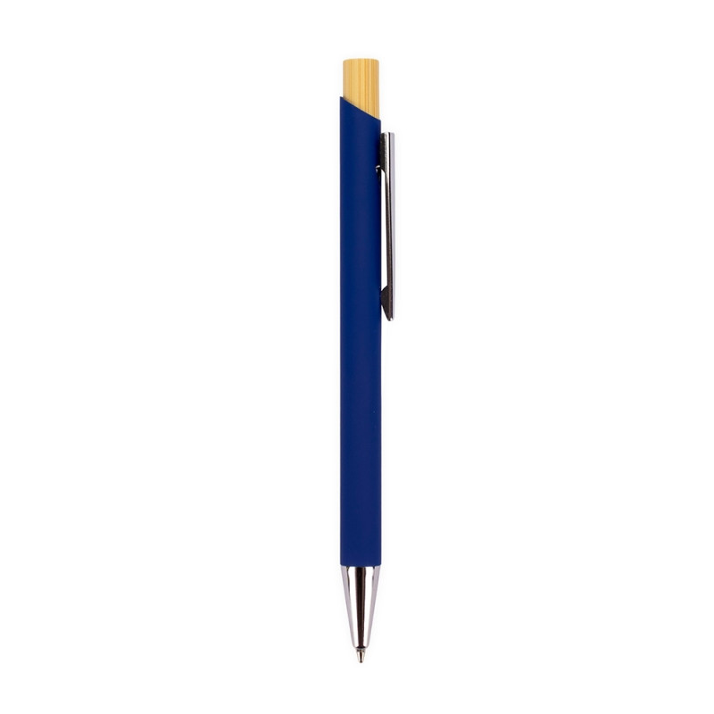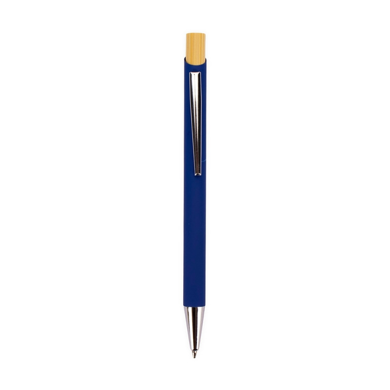 Descrição: Caneta esferográfica com carga azul de 1.0mm. Possui construção metálica e acionamento por clique em bambu, o que proporciona uma pegada leve e maior precisão durante o uso.